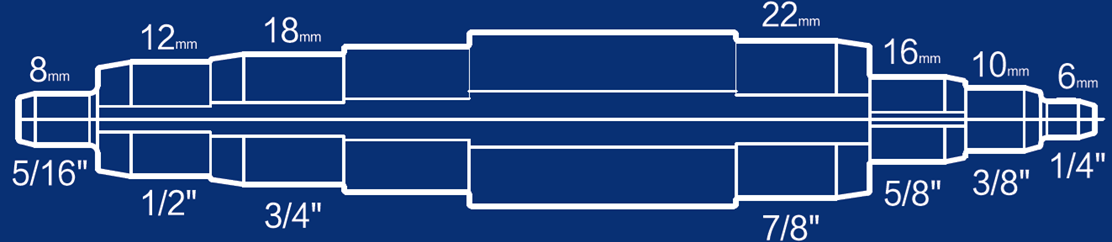- Promjer cijevi1/4”, 5/16”, 3/8”, 1/2”, 5/8”, 3/4”, 7/8” 6, 8, 10, 12, 16, 18, 22 mm