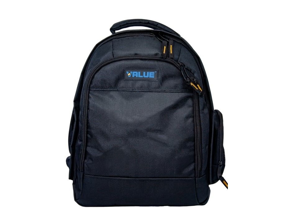 Prazan ruksak za alat VALUE. Čvrsto izrađen s mnogo praktičnih pretinaca.