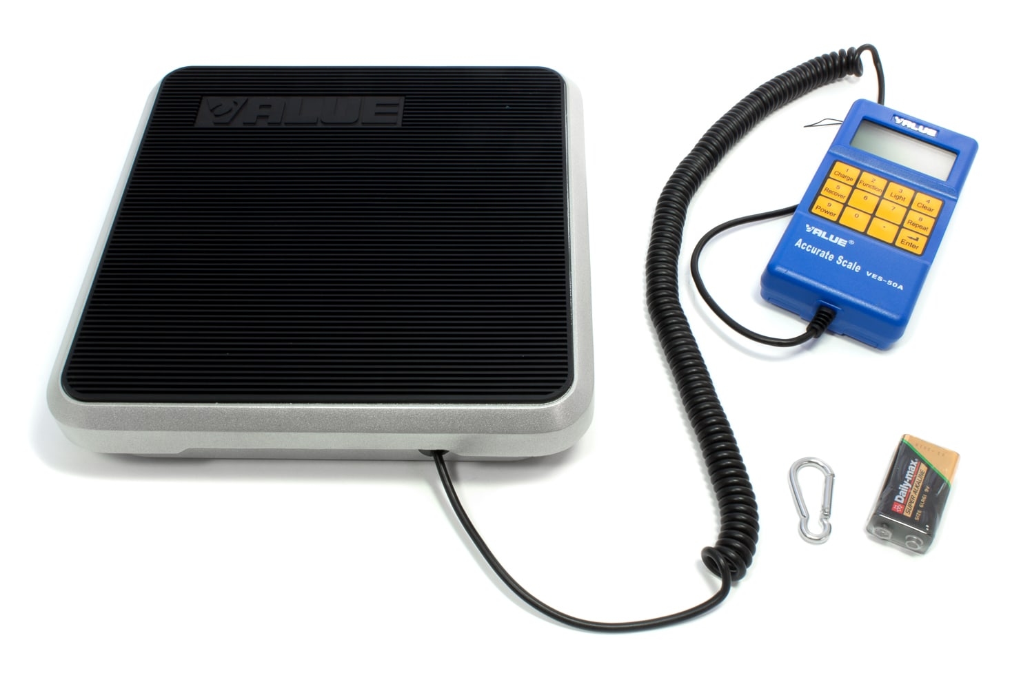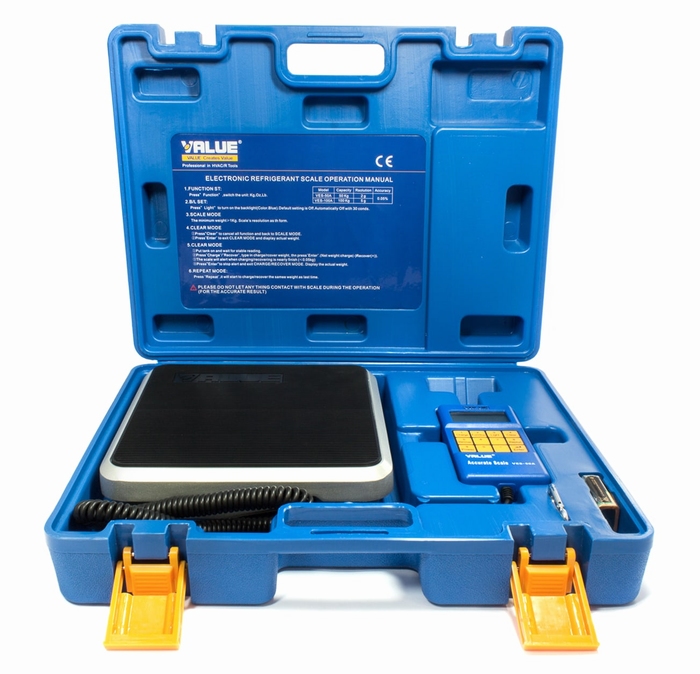 VALUE VES-100A je precizna elektronska vaga kapaciteta 100 kg, namijenjena radu s rashladnim sredstvima u servisima klimatizacije i rashladnih uređaja. Odlikuje se solidnom konstrukcijom, LCD zaslonom, visokom točnošću i jednostavnim rukovanjem. Idealna je za punjenje i pražnjenje rashladnih plinova s kontroliranim doziranjem.